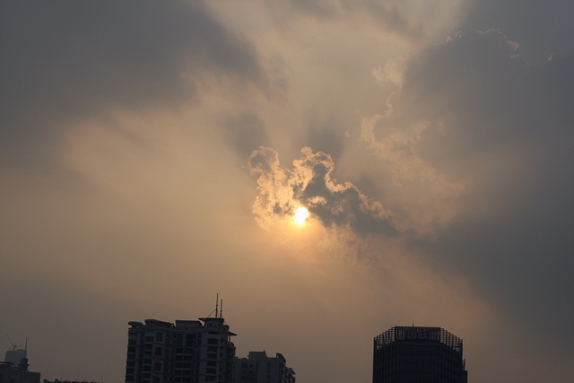 这是上周末在公车上抓拍的夕阳,我觉得还不错,有点艺术的气息。