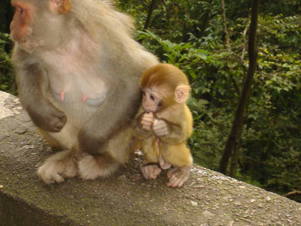 首先是景色。我去的这几个地方基本一样,看点都是山、水和人头。贵州的这些山山水水着实不错,就拿贵阳市区的黔灵山公园来说,虽然名字很普通,但其实是一个占地面积相当之巨大的自然景区,数座山峰围绕着一个大湖,花五块钱买张票进去暴走一天都不一定能转得出来。我凌晨五点半出发跟着晨练的中老年朋友免票进去探险,直到十点多出来,看了下地图貌似也就走了一半地方,太神奇了。中国应该找不到第二个省会城市有这么好的休闲场所了吧(而且公园入口还是在比较靠近闹市区的地方而不是要开车几十分钟才能到)?而且这还是一个原生态的森林,很多人专门拿着一大堆水瓶去山上接泉水喝(我试了一下倒没有「有点甜」的感觉,不见得好过自来水,可能心理暗示的成分更多些),而且还有野生的猕猴!野生的,不怕人,还会攻击人的那种!就是下图这种,看着很乖很可爱是因为它还小还没学会耍流氓,因为我拍照的时候拿在手里的矿泉水就被它亲戚跳起来抢走了,然后拧开瓶盖倒光(相当熟练),抱着空瓶走了。