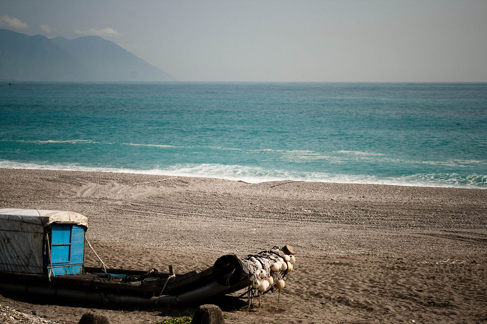 在花莲的最后一天,本想一路开往清水断崖,结果发现高估自己的体力了……于是在七星潭坐了一上午,依然是一个人也没有。远处山上云雾缭绕,海浪重复单调的拍打着滩涂,我就这么发呆,发呆……